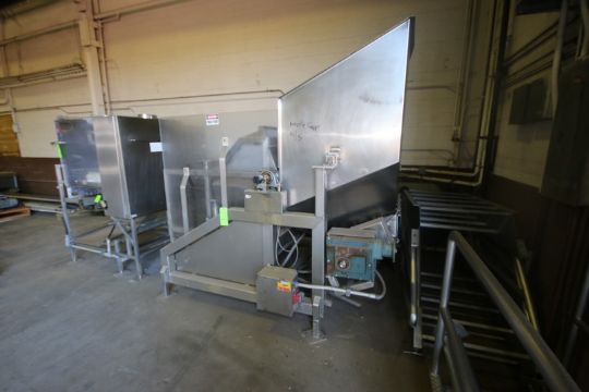Loos S/S Veggy Crusher, with Tilt S/S Dump Compartment, with (4) S/S Destructive Rolls In S/S Chute, Mounted on S/S Frame (LOCATED IN MEDFORD, WI)(Rigging, Loading & Site Management Fee: $600.00 USD)