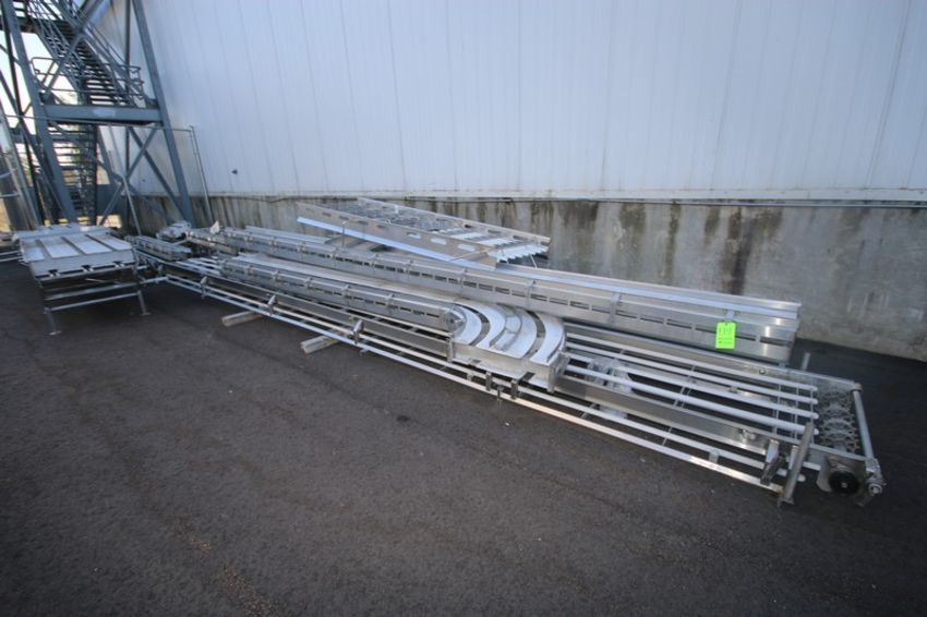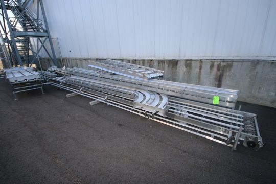 Assorted S/S Conveyor Frames, with Straight & Curve Sections (NOTE: Missing Belts, Legs, & Drives) (LOCATED IN TOY BARN) (LOCATED IN MEDFORD, WI) (Rigging, Loading & Site Management Fee: $125.00 USD)