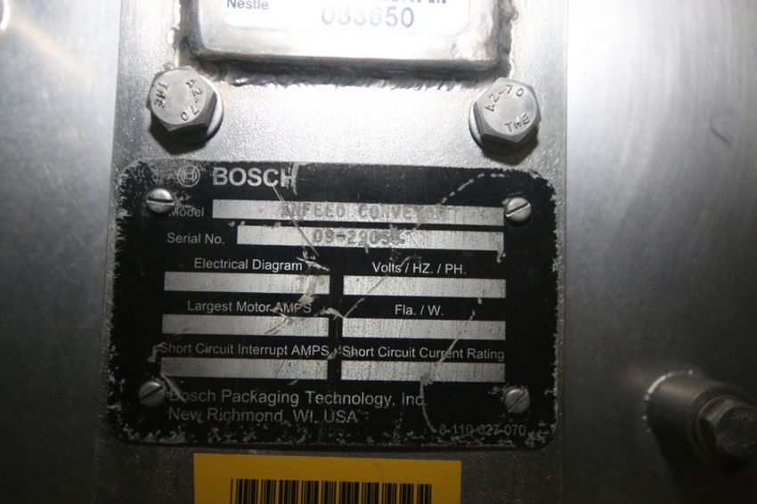 Bosch Doboy Linium S/S Flow Wrapper, M/N Linium 315, S/N 09-29054, with Allen-Bradley PanelView Plus 1000 Touchscreen Display, 240 Volts, 3 Phase, with Infeed Aprox. 20' L Overall Length (LOCATED IN MEDFORD, WI) (Rigging, Loading & Site Management Fee: $1,200.00 USD)