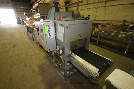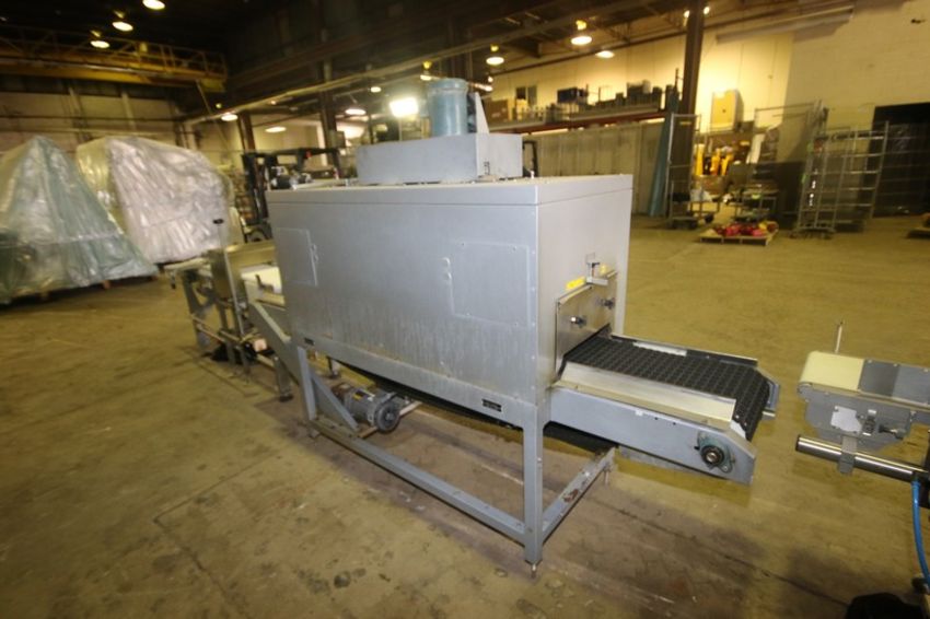 Bosch Shrink Tunnel, S/N 09-29061, 460 Volts, 3 Phase, with Aprox. 14-1/2" W Belt, with Aprox. 2-1/2" H Product Clearance, with Reliance 1.5 hp Motor (LOCATED IN MEDFORD, WI) (Rigging, Loading & Site Management Fee: $400.00 USD)