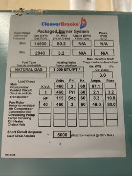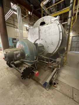JOHNSON HORIZONTAL NATURAL GAS BOILER, CAT NO. 528-AHG, S/N S-4604, 1,000 BTU/FT3, WITH ALLEN-BRADLEY POWERFLEX 400 VFD, EQUIPPED WITH BALDOR MOTOR 40/30 HP 3530/2950 RPM 208-230/460 V