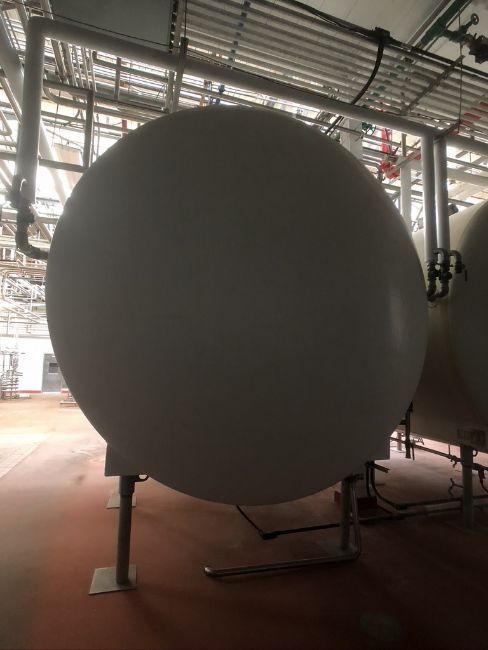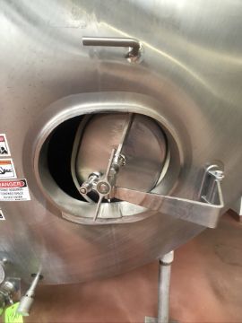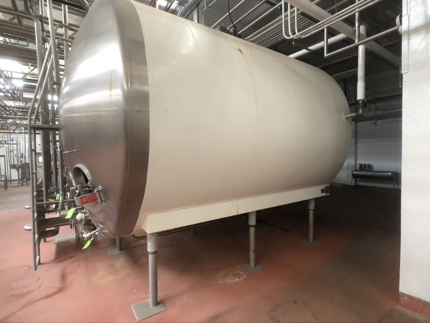 (1) WALKER 7,000 GALLON HORIZONTAL S/S GLYCOL JACKETED TANK, MODEL HHT, S/N SPG-53754-1, WITH VERTICAL AGITATION, S/S FRONTS (RECENTLY REFURBISHED)
