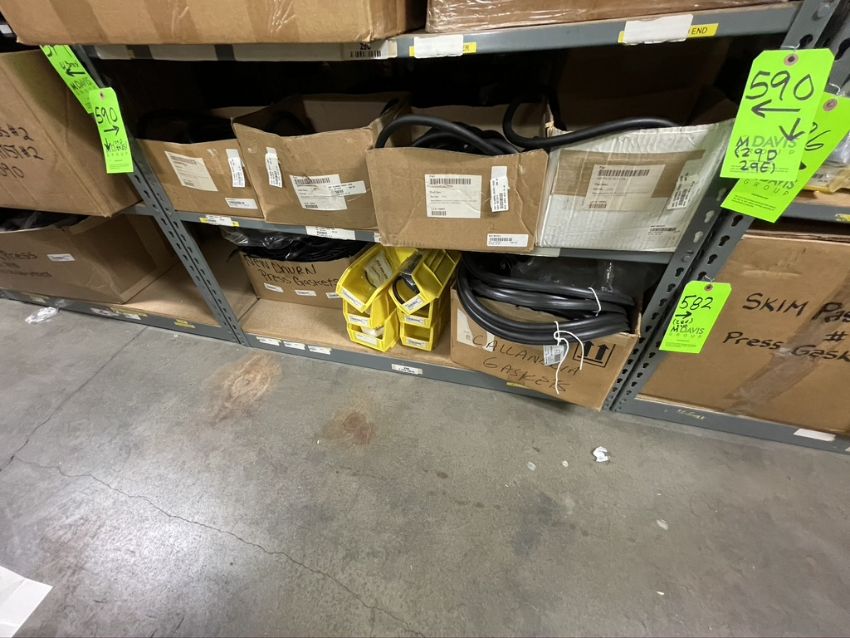 CONTENTS OF SHELF, ASSORTED GASKETS (ON "29D" AND "29E" SECTIONS OF RACK)