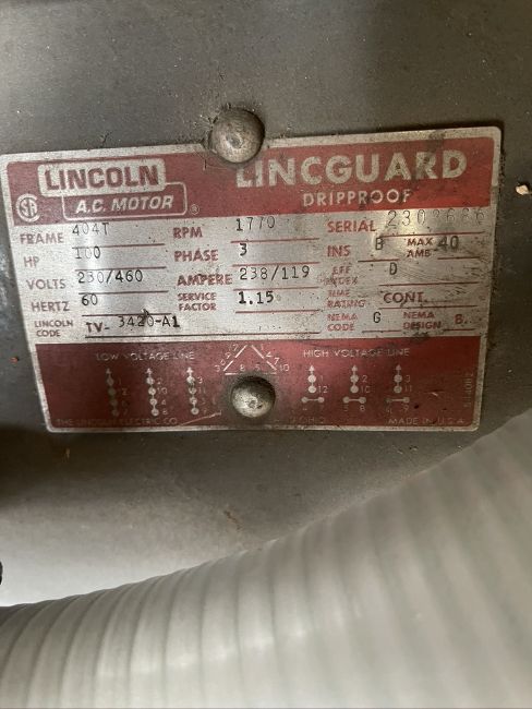 LINCOLN MOTOR 100 HP 1770 RPM 230/460 V