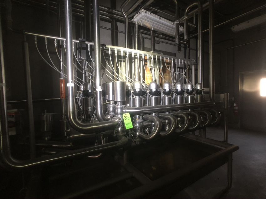 2015 SKID-MOUNTED SUDMO 54-VALVE AIR VALVE CLUSTER, INCLUDES (28) SUDMO PENTAIR AIR VALVES WITH INTELLITOP 2.0 CONTROL HEADS, INCLUDES S/S MIX SYSTEM TANK INLET VALVE MANIFOLD I/O PANEL CONTROL PANEL, EQUIPPED WITH ALLEN-BRADLY FLEX I/O ETHERNET/IP
