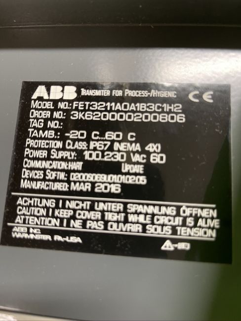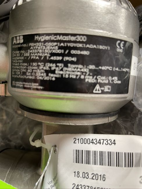 HYGIENICMASTER 300 FLOW METER, MODEL FEH321, WITH ABB DIGITAL READ OUT MODEL FET3211AOA1B3C1H2 (ALL NEW IN BOX)