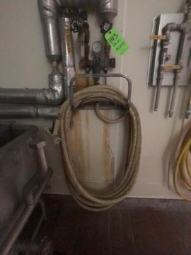 (2) ECOLAB BOOT SPRAY SANITIZING SYSTEMS, (1) STRAHMAN M-500 HOSE REEL MAX PSI 150, (1) ECOLAB COMMANDER HOSE REEL MODEL 4455 (1) HOSE REEL