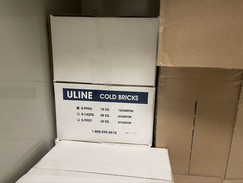 CONTENSTS OF SHELF INCLUDING (2) NEW BOXES OF 10 MM SYRINGES, (5) BOXES OF ULINE COLD BRICKS