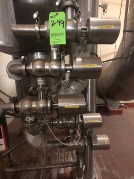 FELDMEIER S/S TANK APPROX. 4,000 GALLONS, S/N N-943-08, APPX 275"H X 68''DIAM, INCLUDES 5-VALVE SUDMO AIR VALVE CLUSTER, OUTLET VALVE, CENTRIFUGAL PUMP
