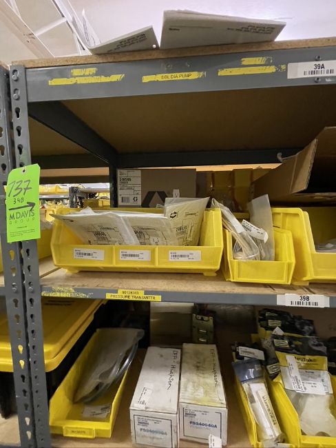 CONTENTS OF SHELF, INCLUDING ASSORTED GRACO DIAPHRAGM AND HOSE PUMP PARTS (ON SECTION "39B" OF RACK)