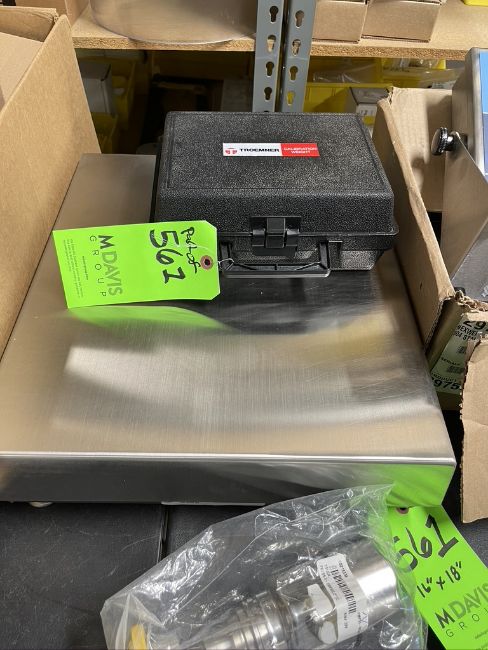 FAIRBANKS NEXWEIGH S/S COUNTERTOP SCALE WITH DIGITAL READ OUT, MODEL FB5050K, S/N 143570010108, RICE LAKE PLATFORM MODEL BM1618S-100, S/N 1720400080, APPX DIM. OF PLATFORM 16'' X 18'', INCLUDES 1 KG TROEMNER CALIBRATION WEIGHT (ALL ITEMS NEW IN BOX)