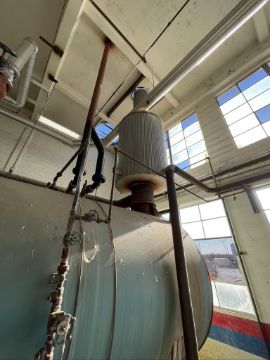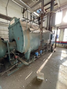 CLEAVER BROOKS HORIZONTAL NAT-GAS BOILER, 201 PACKAGED BURNER MODEL NTD168NGX-F09R, S/N T376204-1, 1,000 BTU/FT3, ALLEN-BRADLEY POWERFLEX 400 VFD, WITH LEESON MOTOR 50 HP 3565 RPM 208-230/460 V, INCLUDES DIFUSER TANK