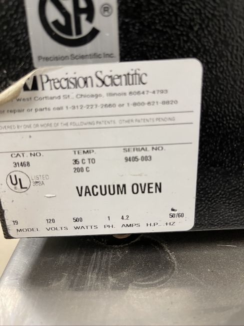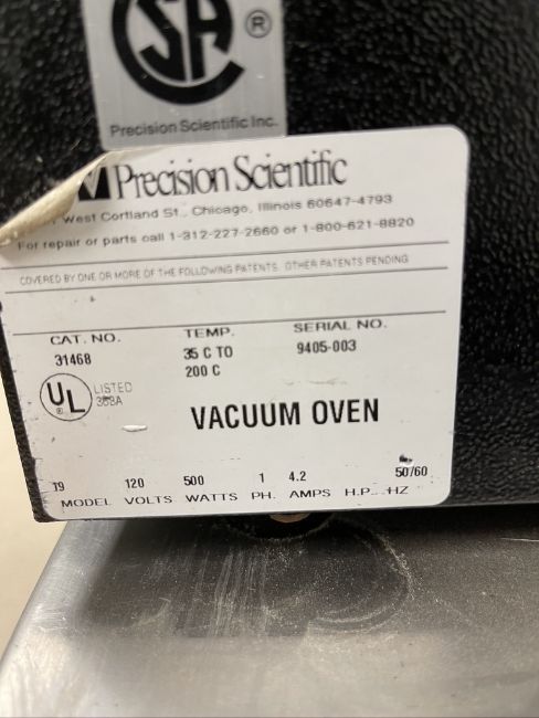 PRECISION VACUUM OVEN, MODEL 19, WITH MARATHON ELECTRIC PUMP, INCLUDES S/S RACK