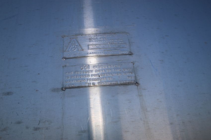 DCI 2,000 Gal. S/S Vertical Processor, with Top Mounted Agitation Motor Mount, Mounted on S/S Legs (LOCATED IN SULPHUR SPRINGS, TX) (Rigging, Handling & Site Management Fee: $2,500.00)