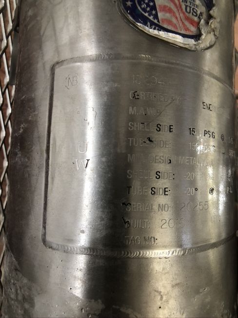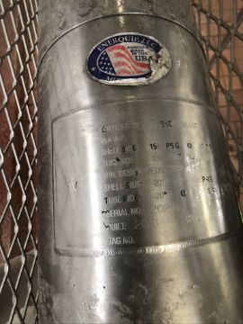 2016 ENERQUIP S/S SHELL AND TUBE HEAT EXCHANGER, S/N20255, 150 PSI @ 375 F, CENTRIFUGAL PUMP, ARMSTRONG PUMP TRAP (SUBJECT TO BULK BID)
