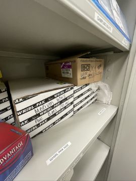 CONTENSTS OF SHELF INCLUDING NEW WHIRL-PAK BAGS
