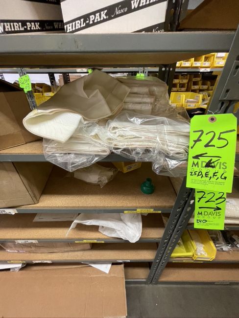 ASSORTED FILTERS, FILTER BAGS, SHAKER BOOTS, WIND SOCK AND MORE (ON SECTIONS "25D, 26E, 25F, 25G" OF RACK)