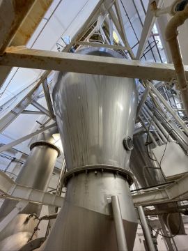 GEA NIRO BSI Approx. 40 ft H x 10 ft W S/S Tower Dryer with Natural Gas, Associated Duct Work, 4 – Level Operators Platform, Related Valves, Piping & Controls
