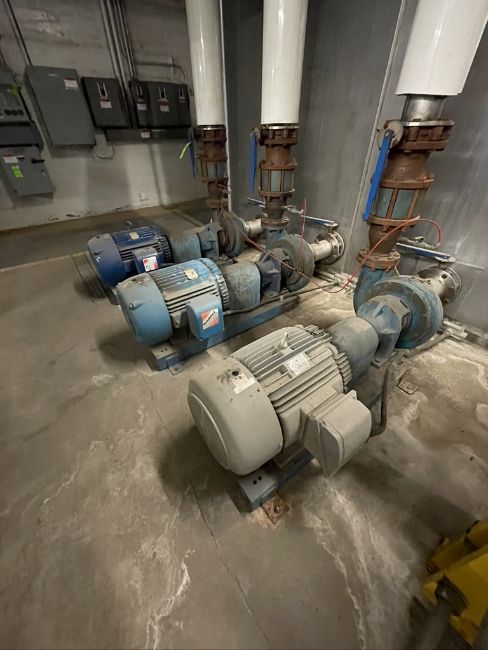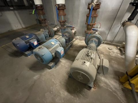 S/S HOLDING TANK 6' x 8' x 12', CIRCULATION SYSTEM WITH (3) CENTRIFUGAL PUMPS (PACO PUMPS ~40 HP 1760 RPM 230/460 V) & RECEIVER, AGC PRO FLOW PLATE FRAME HEAT EXCHANGER, MODEL PRO2-1, S/N 2014303 (SUBJECT TO BULK BID)