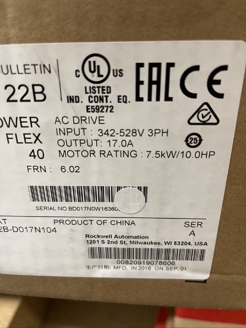 ALLEB-BRADLEY POWERFLEX 40 VFD 10 HP 342/528 V (NEW IN BOX)