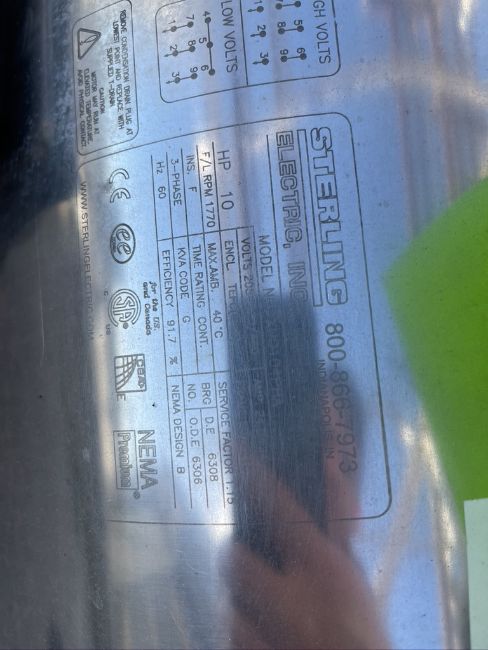 FRISTAM ALL S/S PUMP MODEL FPX3532-155, S/N FPX3532984046, STERLING ELECTRIC S/S MOTOR 10 HP 1770 RPM 208-230/460 V