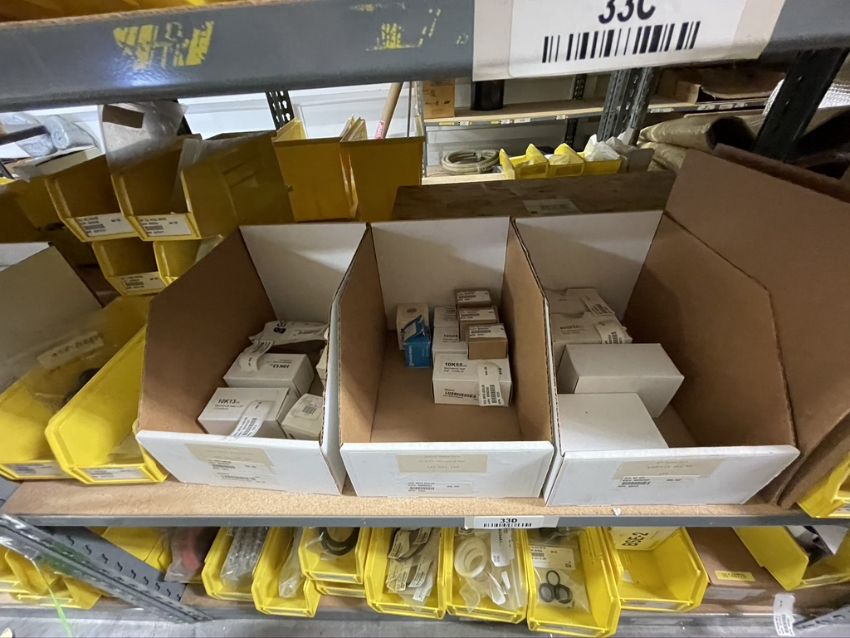 ASSORTED PUMP PARTS, INCLUDING WASHERS, SEAL KITS, O-RINGS, CASINGS AND MORE (LIMITED TO "33C, 33D, 33E" SECTIONS OF RACK)