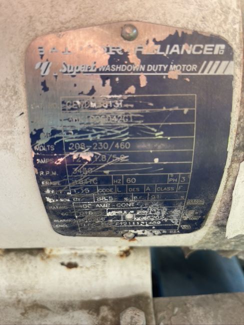 FRISTAM CENTRIFUGAL PUMP MODEL FPX 35419, S/N FPX3541972980, BALDOR MOTOR 5 HP 3450 RPM 208-230/460 V