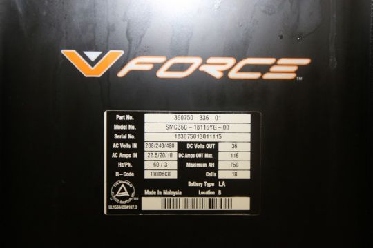 Force Battery Charger, M/N SMC36C-10116YG-00, with Gray Connector (LOCATED IN DOUGLAS, GA) (Rigging, Handling, & Site Management Fee: $50.00 USD)