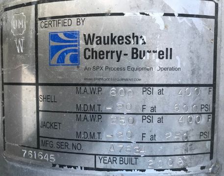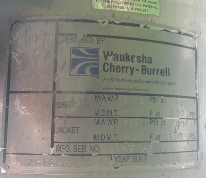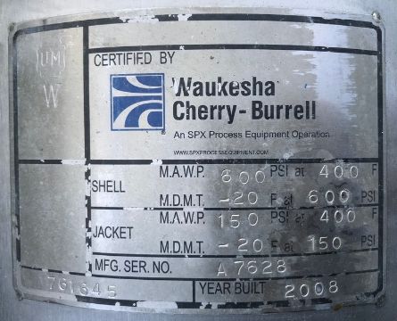 Bulk Bid Lot #391 to Lot #399 - (9) Waukesha Cherry Burrell Aprox. 6" Dia. x 84" L Contherm Votator II Scraped Surface S/S Heat Exchangers, Model 6X84 123469, S/N's 457863 - Shell MAWP 600 psi@ 400 F and Jacket MAWP 250 psi @ 400 F (2008) with Spare Parts, Mounting Posts, 10 hp Inverter Duty Motor, 3 Phase, 1735 RPM, 230/460 V - Last Operated 3 Months Ago (NOTE: SUBJECT TO PIECEMEAL BIDDING) (Located Garden Grove, CA)
