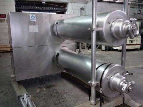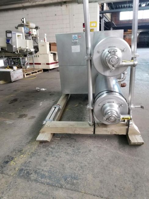 Waukesha Cherry Burrell S/S Aprox. 6 x 48 Twin Tube Thermutator, Model 648L, S/N 1707 with (2) 10 hp Drives, 230/460 V, Maxium Allowable Product Pressure 400 psi, Maximum Allowable Product Media 250 psi, Maximum Allowable Product Temperature 400 Degree F, Maximum Allowable Product Media 250 Degree F, All S/S Sanitary Food Grade System, (NOTE: Will Crate the Unit at no Charge to ship common carrier-- Please inquire for shipping rates) (Located Hortonville, WI)