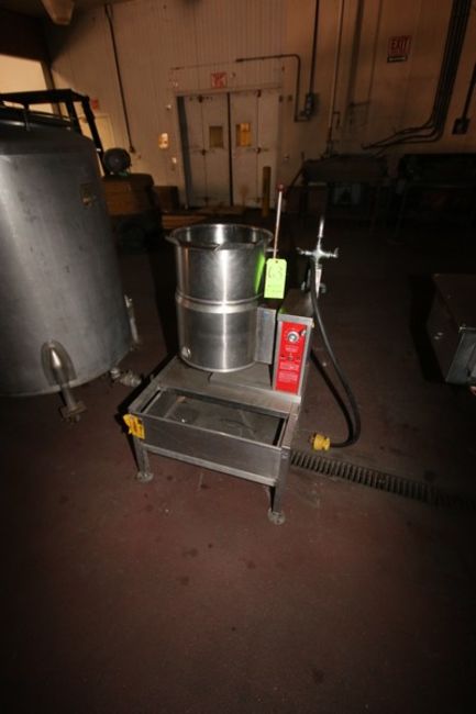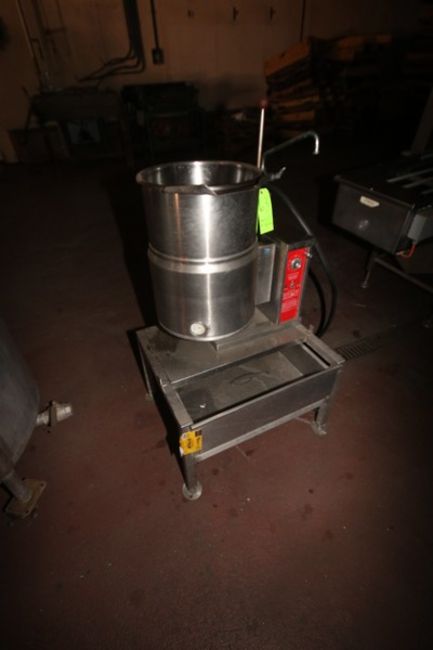 Aprox. 15 Gal. S/S Tilt Kettle, M/N VEC12TW, S/N AP-1036119-10X-5458, 208 Volts, 3 Phase, Kettle Dims.: Aprox. 18" Deep x 15-3/4" Dia., Mounted on S/S Frame (LOCATED IN DOUGLAS, GA) (Rigging, Handling, & Site Management Fee: $50.00 USD)