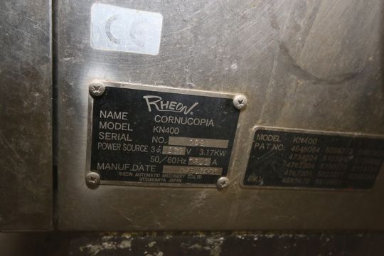 Rheon Cornucopia Encrusting Machine, M/N KN400, S/N 1021, 220 Volts, 3 Phase, Mounted on Portable Frame (NOTE: Missing Parts) (LOCATED IN DOUGLAS, GA) (Rigging, Handling, & Site Management Fee: $500.00 USD)