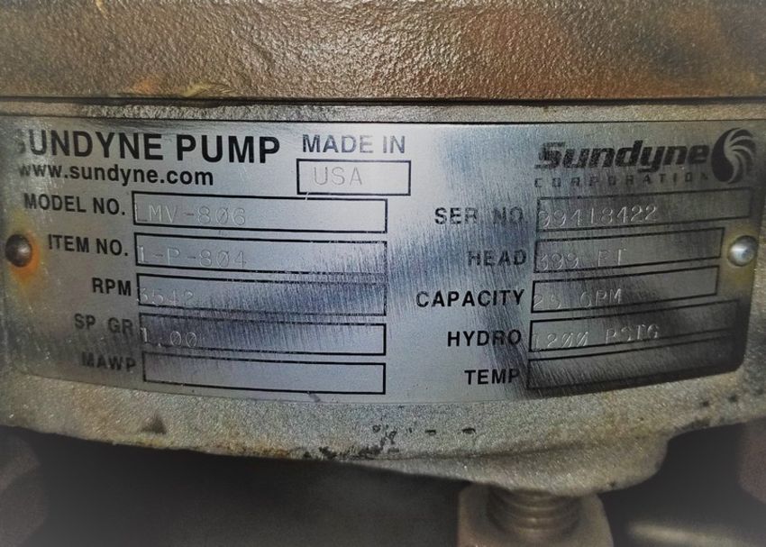 Sundyne Centrifugal Pump, Model LMV-806, S/N 9941842, 25 GPM, 3542 RPM, 1200 PSIG (Located Lebanon, PA) (Load Fee $25.00)