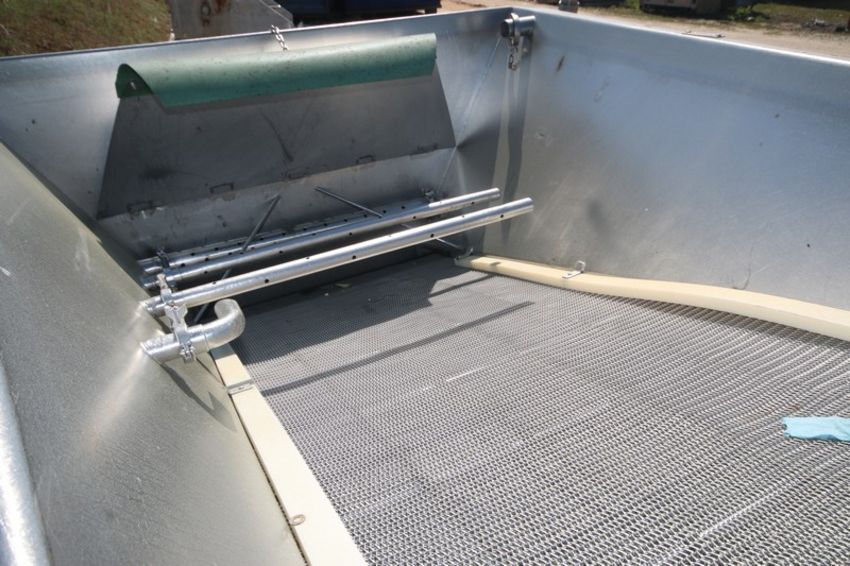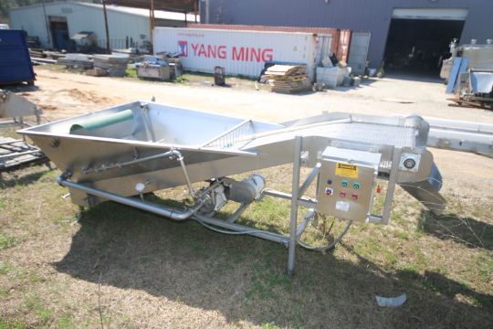 S/S Dip Rinse Hoppers, with Aprox. 35-1/2" W S/S Mesh Conveyor, with Bottom Mounted 5 hp Centrifugal Pump, with 3-Horizontal Rinse Bars, with Side Mounted Control Panel (LOCATED IN DOUGLAS, GA) (Rigging, Handling, & Site Management Fee: $500.00 USD)