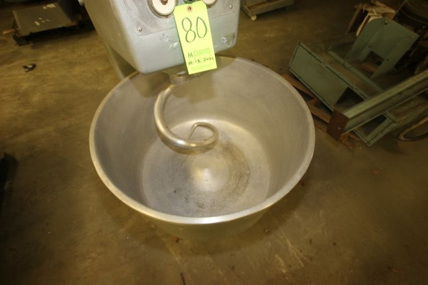 Dough Mixer, with S/S Bowl & S/S Doug Hook, Bowl Dims.: Aprox. 29" Dia., Mounted on Frame (LOCATED IN DOUGLAS, GA) (Rigging, Handling, & Site Management Fee: $150.00 USD)