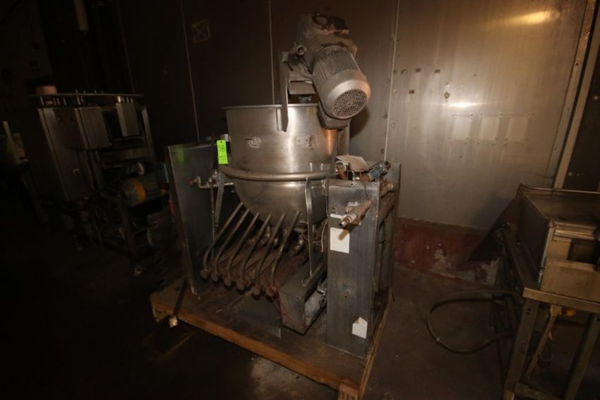 Groen 100 Gal. S/S Kettle, M/N DH/INA/2-100, S/N 10675-2, MAX. WP. 50 PSI @ 300 F, with Side S/S Agitation, with Bottom Steam Injection (LOCATED IN DOUGLAS, GA) (Rigging, Handling, & Site Management Fee: $150.00 USD)