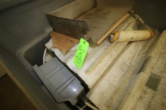 Aprox. 16' H Elevator Conveyor, Aprox. 32" W Frame, with S/S Clad Motor, with Bin of Plastic Cleated Conveyor (LOCATED IN DOUGLAS, GA) (Rigging, Handling, & Site Management Fee: $100.00 USD)