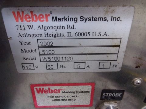 Weber 5100 Zebra 170PAX4 Label Printer Applicator, S/N W51001120 with Complete Adjustable Stand, Unit Mfg. 2002, Will Crate for $250 to Ship Common Carrier (Loading Fee $50) (Located Hortonville, WI)