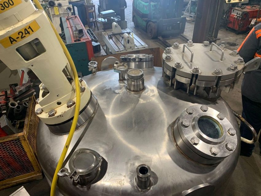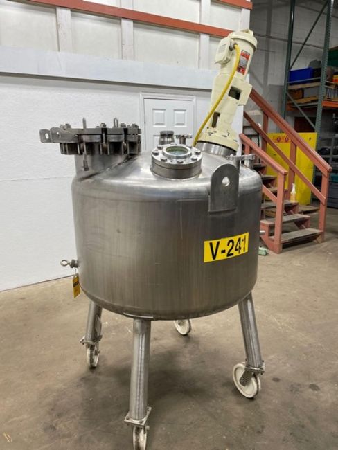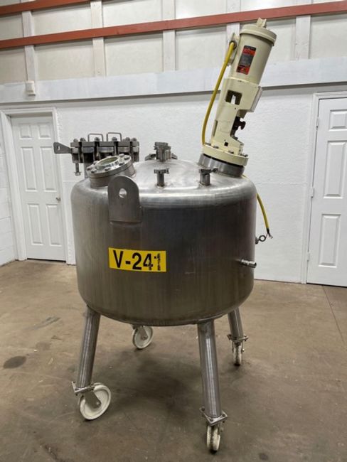 150 Gal. Portable S/S Mixing Tank Mounted on Casters with Lightnin Mixer and Aerators, Model XJSS-30 Dura-Mix, 3 Phase, S/N 94/B59099, HP: 30 - 3 Phase, Overall Tank without top and bottom crown with Aprox. 42" Dia. x 24" H, Various Ports and Opening, View Port and Discharge on Bottom (NOTE: Does Not Appear to be Jacketed), Seller can load this item as shown at no charge. Seller can palletize this item for LTL Shipment for $250, (Preview available daily by appointment - Contact Ryan 612-564-4726) (Located Savage, MN 55378)
