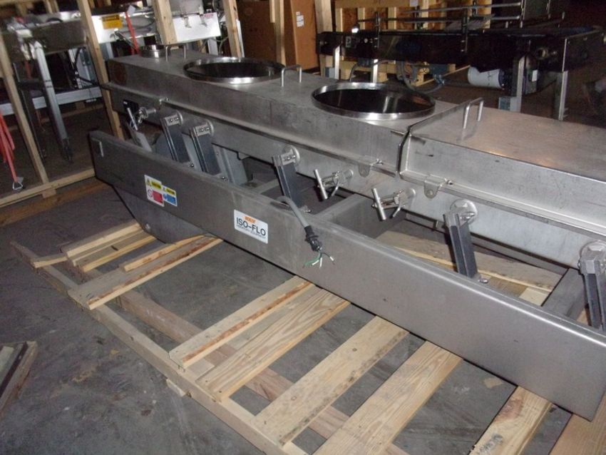 Key Iso Flo S/S Sanitary Shaker/Feeder, Model Model 431751-1, S/N 03-96940, Aprox. 18 Inches X 10 Foot, This unit was last used in the dairy industry and remains in excellent condition.All Stainless Steel Sanitary Construction, Overall dimensions of the unit measures 30 inches wide X 122 inches long X 38 inches high, Shaker Feeder pan measures 18 inches wide X 112 inches long, System has a stainless steel top cover with 2 large infeeds, This cover allows an additional 5 inches of product carry, Unit has 5 inch sides (We will crate this unit for 400 dollars to ship common carrier) (Loading Fee $100) (Located Hortonville, WI)