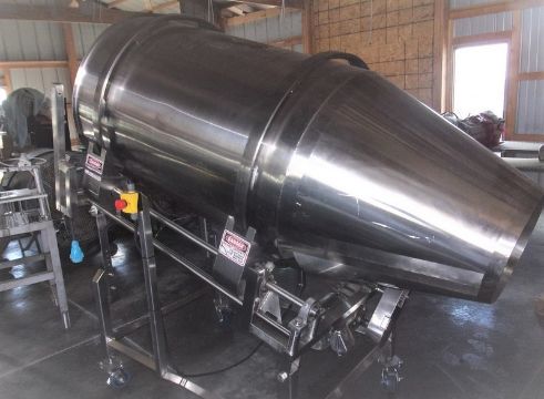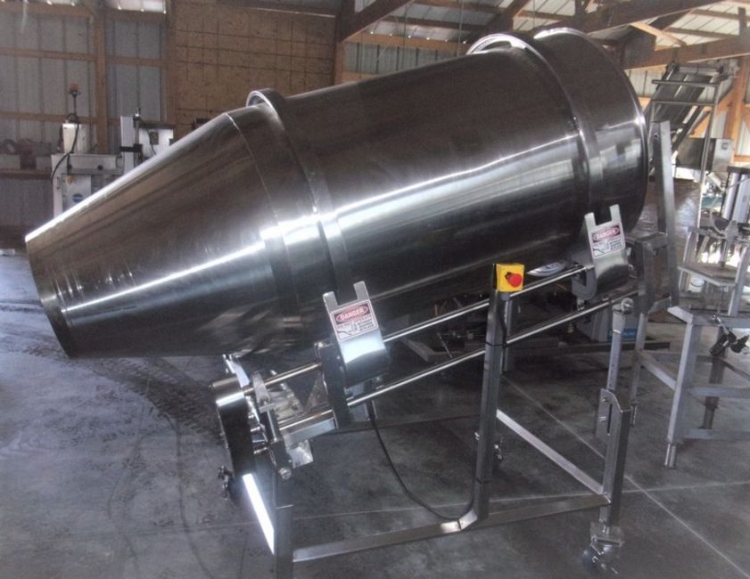 LOOS Machine 32 Inch Diameter Stainless Steel Sanitary Tumble Drum, S/N 9176-0136, Machine meets USDA and WDA specs, 32 Inch diameter X 60 inches long, Adjustable degree of angle for tumble, Emergency stop on both sides of system, 1/2 hp stainless steel washdown motor 208/230 volt - We were told these units were purchased new and never installed - I see a little wear so I am going to reluctanly call these used, These are extremely nice systems built to go into the dairy industry for cheese, Portable on casters, We will crate these units for 500 dollars each to ship common carrier (Loading Fee $150) (Located Hortonville, WI)