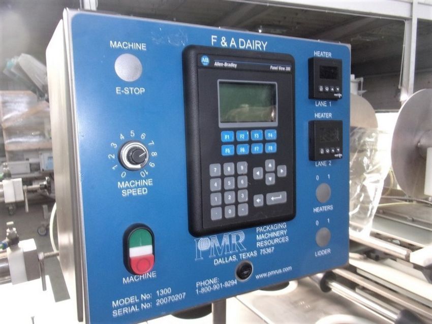 PMR (Packaging Machinery Resources) Dual Lane Continuous Container Filler, Sealer, Lidder, Model 1300, S/N 20070207, with All S/N Sanitary System, 440 Volt, Allen Bradley Micrologic Controller, Allen Bradley PowerFlex Speed Controller, Allen Bradley Panelview 300 Control Pad, Unit is on Casters, System is rated at Aprox. 30 Containers Per Minute, Current Container Diameter is Aprox. 6", -- This System Denests the Containers, Fills the Containers, Puts a Protective Seal on the Container and then Lids. (NOTE: This System will need to Ship Via Flatbed so please inquire for shipping costs) (Located Hortonville, WI)