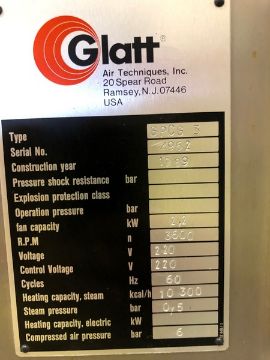 Glatt GPCG3 Fluid Bed Dryer. Model: GPCG-3, Serial: 4962, 220 Volt, 3 Phase, 60 Hz. Machine comes with two chambers. As shown in photos. Video available upon request. (Located Pittsburg, NY)