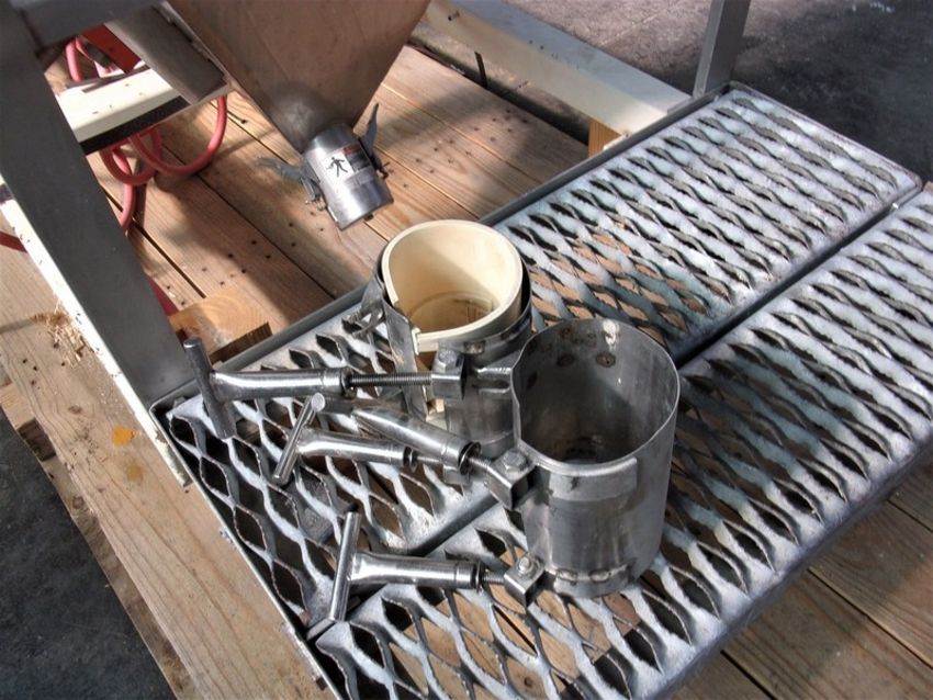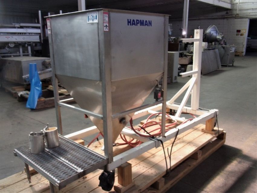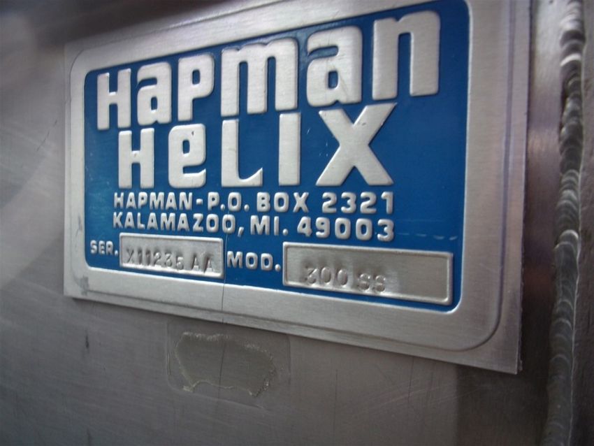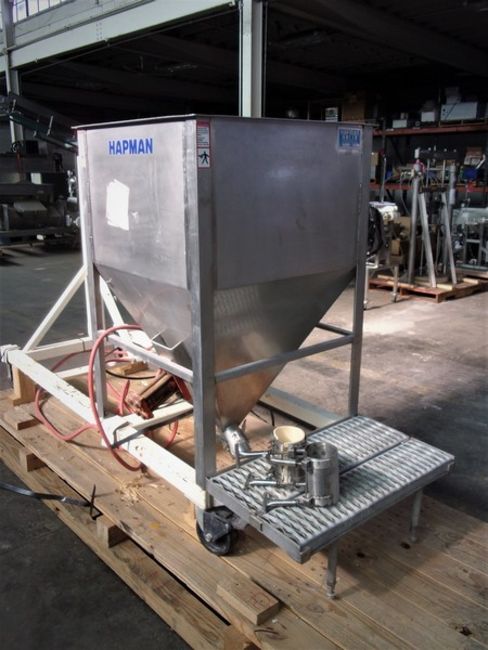 Hapman Helix S/S Hopper Conveyor Frame, Model 300 SS, S/N X11235 AA, Overall Dimensionsof the frame are 96" L x 31" W x 57" H - Overall Height was measured to the top of the Hopper, Hopper Dimensions 32" x 32"x 50" Deep, Unit is Portable on Casters, S/S Safety Grate with Shut-Off Mechanism System Currently Requires 2-1/2 or 2-3/4" Dia. Auger, Unit Comes with a Couple Pipe Clamps and Bottom End Cap (NOTE: This sytem was last used in the food industry. You will receive exactly what you see. This is not a complete system and is missing parts (Auger) etc. This System will require a drive motor, auger and tube) Will Crate System for $300, (Loading Fee $100) (Located Hortonville, WI)