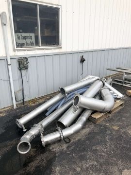 Dust Collector with (2) Single Shell Tanks - Tank #1 - 6-1/2" Outlet, (2) Inlets - 5-1/2" and 8-1/2", Overall Dimensions Aprox. 28" W x 110" H; Tank #2 - Control Box, Removable Cover, Side Door, Air Cylinder with Gauge, (2) 8-1/2" Inlets, (1) 6-1/2" Outlet, 12-Dust Collector Bags - 50" L x 8-1/2" W, Thermometer / Pressure Gauge, Overall Dimensions Aprox. 71" W x 113" H, (3) 9" Tubes, (3) 6" Tubes, 1 Tube has 5 - 2" Hoses (Unit #3272)  (Rigging Fee $1,000) (Located Pulaski, WI)