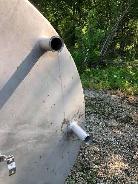 Aprox. 500 Gal. Single Shell Cone-Bottom Tank with (2) Air Actuated Valves, 2" Tri-Clamp Outlet, 2-1/2" 2-2" Tri-Clamp Inlets, Inside Dimensions 58" Dia. x 151" Deep, Overall Dimensions Aprox. 63" W x 195" H (Unit #3276) (Rigging Fee $1,000) (Located Pulaski, WI)