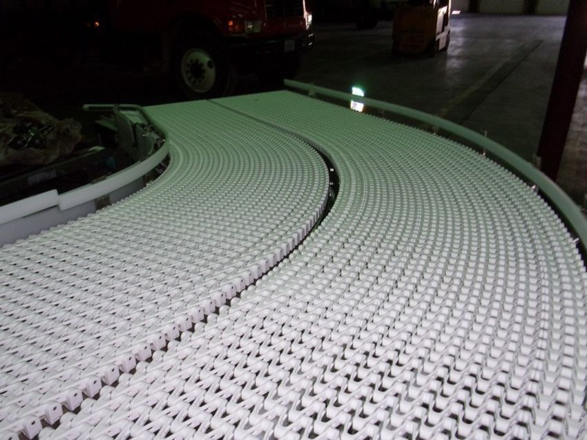 Spantech Dual Lane S/S Sanitary Belt Conveyor, with Dual Intralox Belts - Each Belt 18" W, Aprox. 11 ft. Straight Side with 7 ft. Turn, All S/S Construction, SEW Eurodrive Motor, Current Infeed Height is 41" (This is adjustable with Adjustable Casters), Portable on Locking Casters, OAD 18 ft. L x 43" W x 48" H, Emergency Stop on Both Sides of Conveyor (NOTE: Unit will need to Ship Flatbed - Please inquire for Shipping Rates) (Located Hortonville, WI)