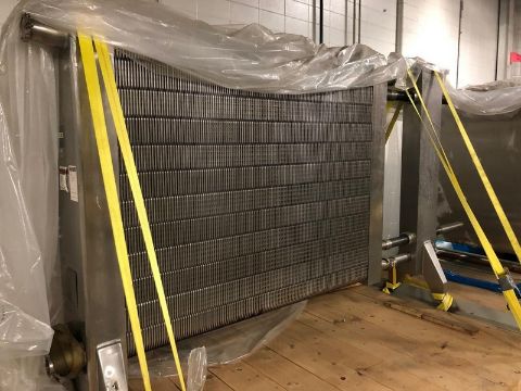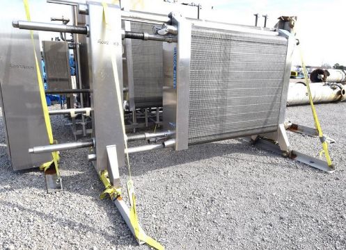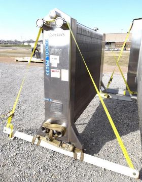 Used- APV Royal Paraflow Plate Heat Exchanger, Model R50. Approximately 1500 square feet. (266) 16-1/2" wide x 60" tall 316 stainless steel plates. 3" Tri-clamp inlet & outlets. Expandable 304 stainless steel frame. Serial # 2617. (Unit #50028003) (Loading Fee $300) (Located Memphis, TN)