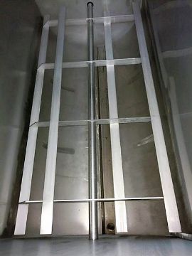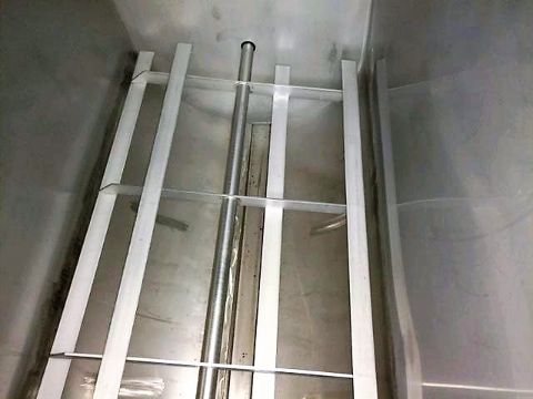 200 CU FT Stainless Steel Liquids/Powder Paddle/Ribbon Blender, (111 cu ft capacity to top of agitator arm, Trough measures: 48"W x 96"L x 80" deep overall, Agitator is 46" dia with 3-1/2" wide blades x 3/8" thick, Single shaft, No mfg tag, 3 inch end bottom drain; 21-1/2 clear to ground, 2 hp SEW Eurodrive, 1720 rpm, Gearbox tag info: 1720 7.4 232.29 109.2, Unit has counterbalanced lid, Lid has (3) 3 inch inlets and (1) 2 inch inlet, OADS: 77"W x 120"L x 108"H (add 30" to height if lid installed), Unit last used in the food industry, Used in excellent working condition, Blender will need to ship via flatbed (Loading Fee $1,000) (Located Hortonville, WI)
