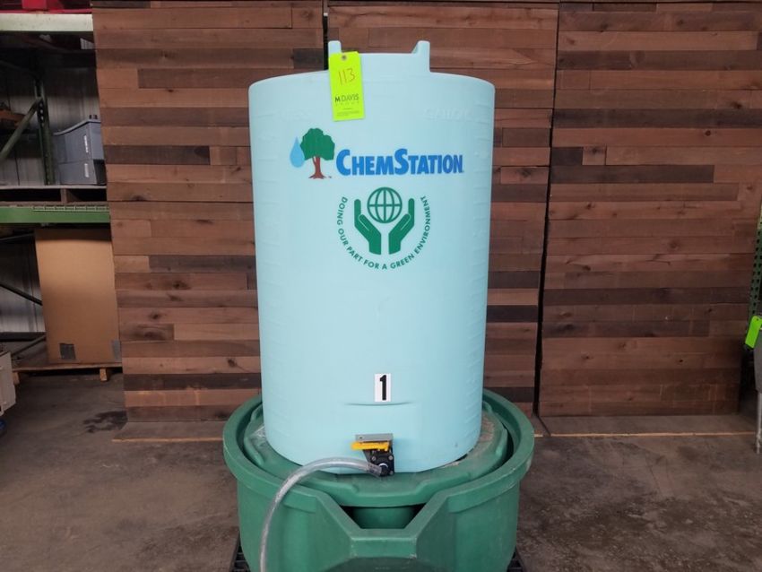 Aprox. 30" round x 44" height plastic tank, 1" outlet, 120 gallon (Handling, Loading & Site Management Fee: $50) (Located Fort Worth, TX)